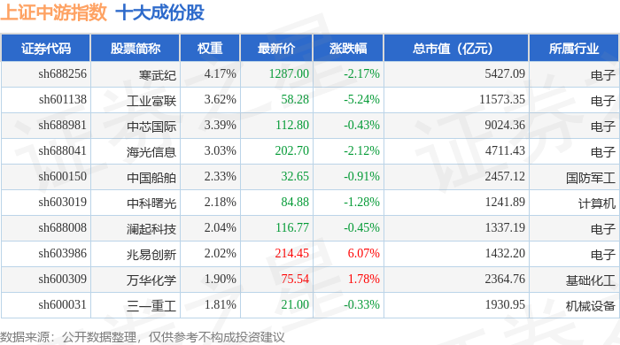 上证中游(000095)指数十大成份股详情如下: