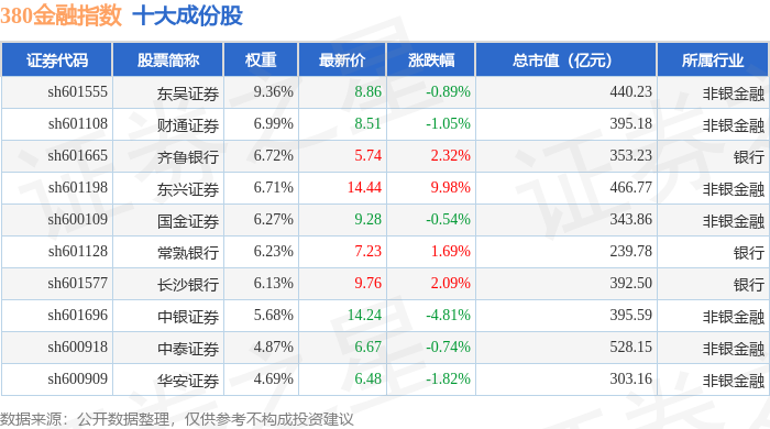 380金融(000110)指数十大成份股详情如下: