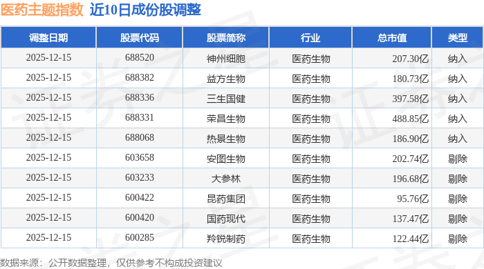 近10日内医药主题(000121)指数成份股做了调整,新纳入了5只股票,剔除了5只股票。