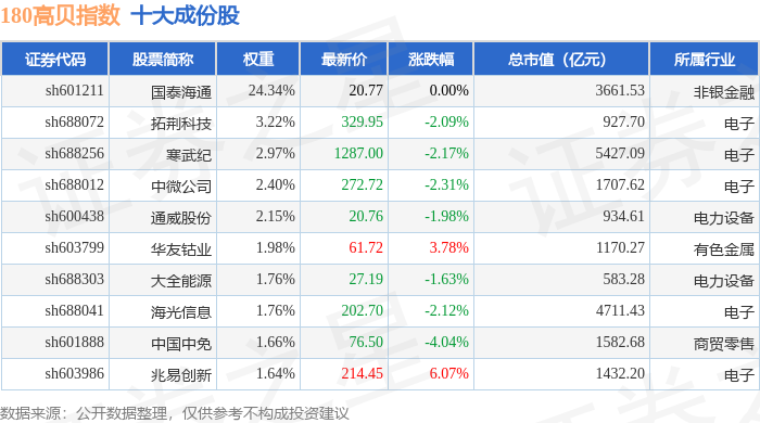 180高贝(000135)指数十大成份股详情如下:
