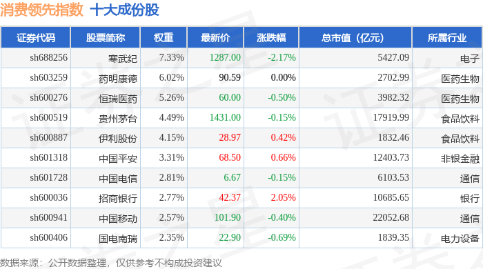 消费领先(000148)指数十大成份股详情如下: