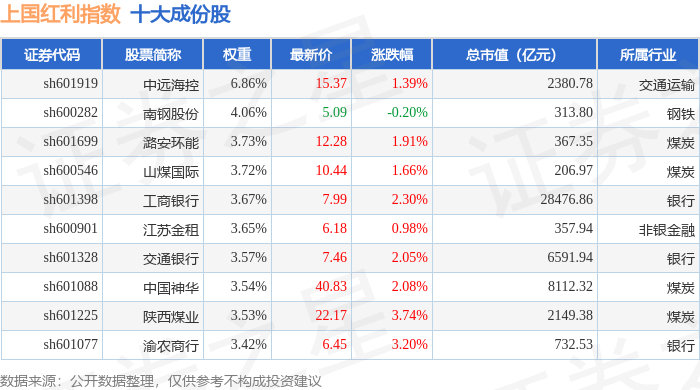 上国红利(000151)指数十大成份股详情如下: