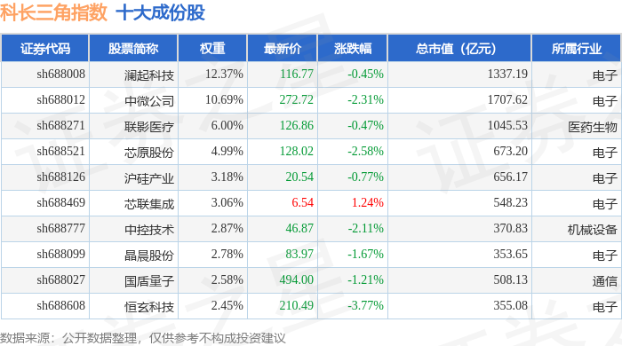 科长三角(000695)指数十大成份股详情如下: