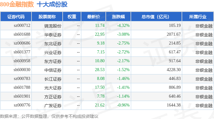 资金流向方面,800金融(000974)指数成份股当日主力资金净流入合计8595.48万元,游资资金净流出合计3385.63万元,散户资金净流出合计5209.86万元。成份股资金流向详情见下表: