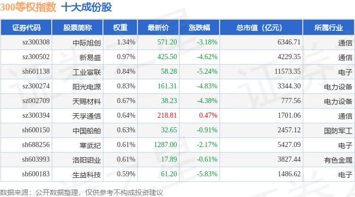 证券之星消息,12月18日,300等权(000984)指数报收于4571.46点,跌0.36%,成交3821.02亿元,换手率0.46%。当日该指数成份股中,上涨的有116家,上海机场以7.12%的涨幅领涨,下跌的有178家,东山精密以6.22%的跌幅领跌。