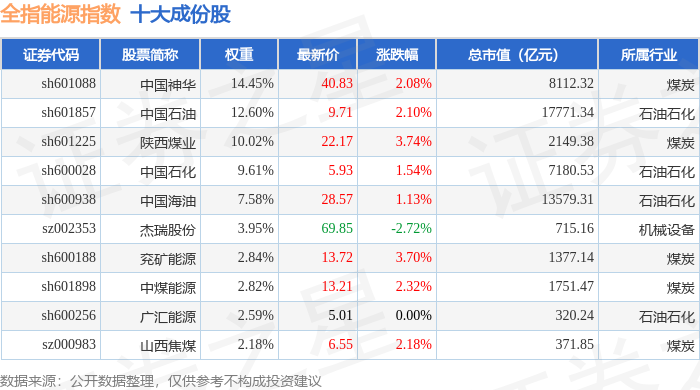证券之星消息,12月18日,全指能源(000986)指数报收于2305.7点,涨1.6%,成交130.85亿元,换手率0.43%。当日该指数成份股中,上涨的有46家,洲际油气以6.05%的涨幅领涨,下跌的有2家,杰瑞股份以2.72%的跌幅领跌。
