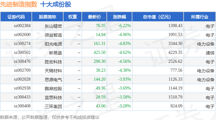 先进制造(399260)指数十大成份股详情如下: