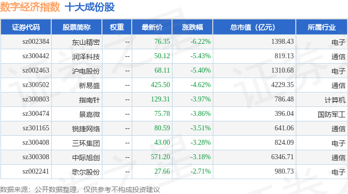 近10日内数字经济(399262)指数成份股做了调整,新纳入了1只股票,剔除了1只股票。