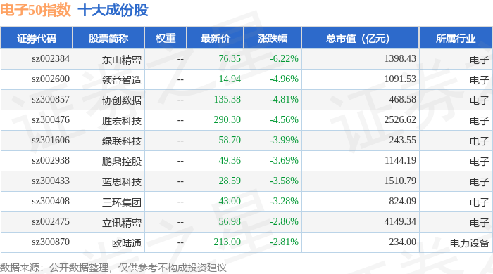 近10日内电子50(399281)指数成份股做了调整,新纳入了3只股票,剔除了3只股票。