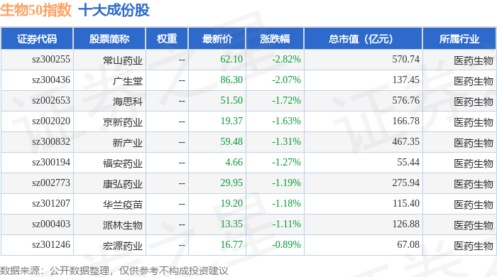 近10日内生物50(399280)指数成份股做了调整,新纳入了2只股票,剔除了2只股票。
