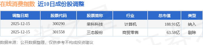 近10日内在线消费(399361)指数成份股做了调整,新纳入了1只股票,剔除了1只股票。