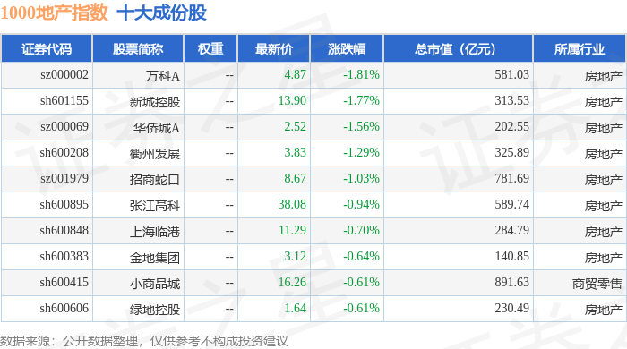 近10日内1000地产(399367)指数成份股做了调整,剔除了2只股票。
