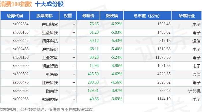 近10日内消费100(399364)指数成份股做了调整,新纳入了11只股票,剔除了11只股票。