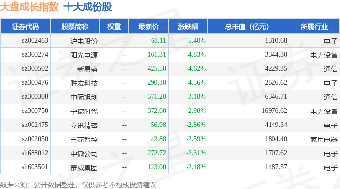大盘成长(399372)指数十大成份股详情如下: