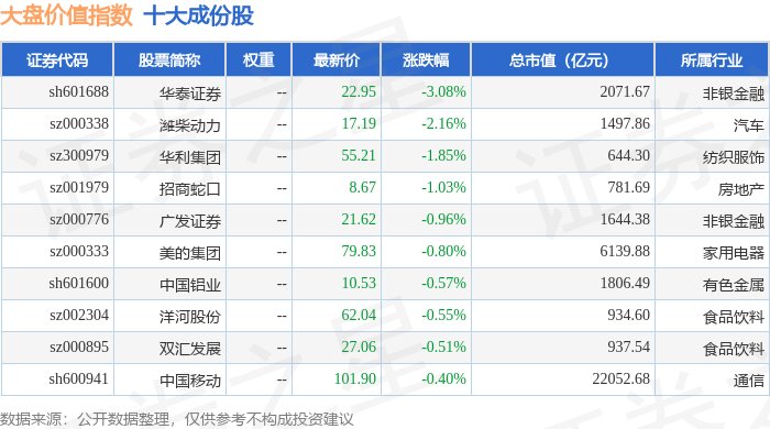 大盘价值(399373)指数十大成份股详情如下: