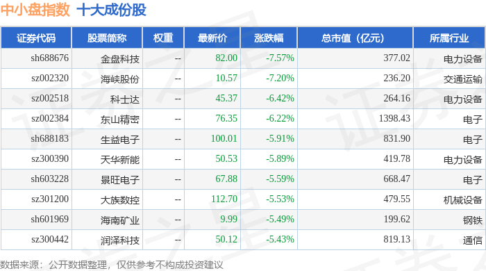 中小盘(399401)指数十大成份股详情如下: