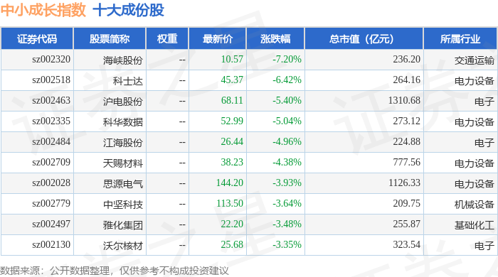 中小成长(399602)指数十大成份股详情如下:
