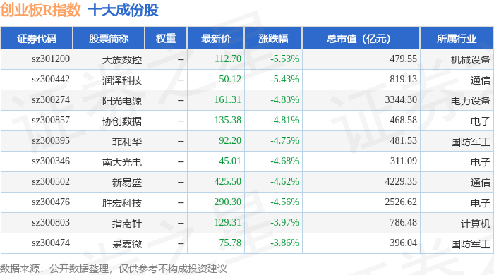 资金流向方面,创业板R(399606)指数成份股当日主力资金净流出合计77.35亿元,游资资金净流入合计26.61亿元,散户资金净流入合计50.75亿元。成份股资金流向详情见下表: