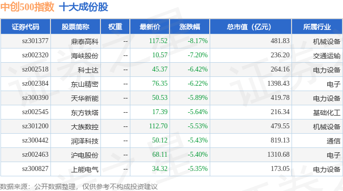 证券之星消息,12月18日,中创500(399625)指数报收于2338.84点,跌1.36%,成交4048.56亿元,换手率1.82%。当日该指数成份股中,上涨的有162家,卫宁健康以11.11%的涨幅领涨,下跌的有325家,鼎泰高科以8.17%的跌幅领跌。