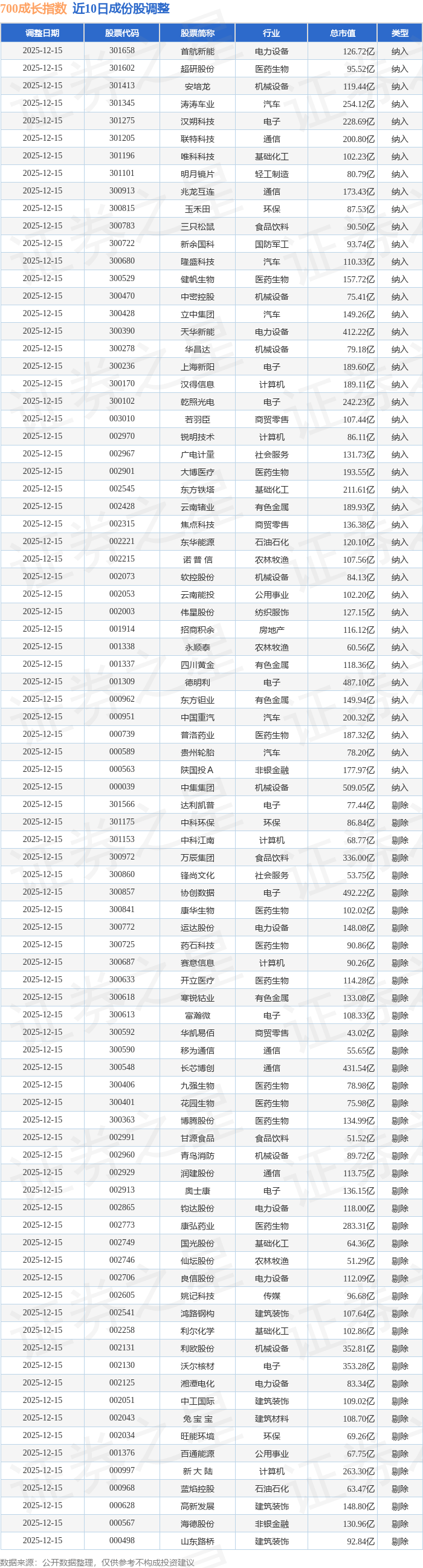 700成长(399628)指数十大成份股详情如下: