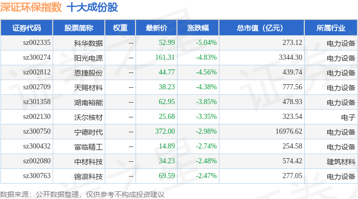 深证环保(399638)指数十大成份股详情如下: