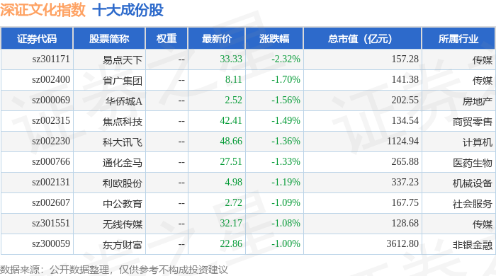 资金流向方面,深证文化(399654)指数成份股当日主力资金净流出合计6.89亿元,游资资金净流出合计6763.62万元,散户资金净流入合计7.57亿元。成份股资金流向详情见下表: