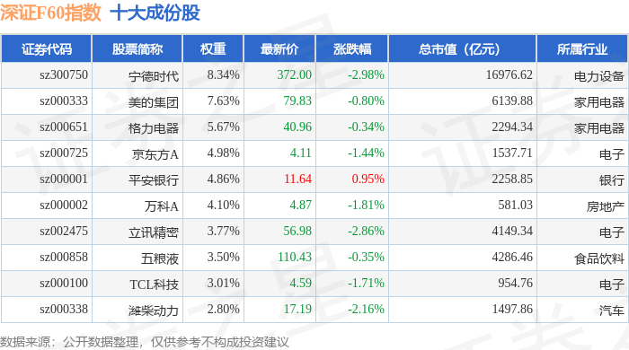 深证F60(399701)指数十大成份股详情如下: