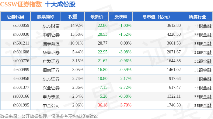近10日内CSSW证券(399707)指数成份股做了调整,新纳入了1只股票。