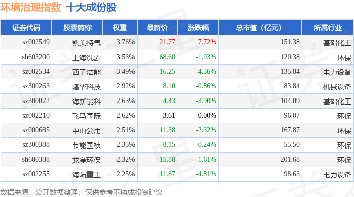 证券之星消息,12月18日,环境治理(399806)指数报收于1344.47点,跌0.15%,成交127.46亿元,换手率1.63%。当日该指数成份股中,上涨的有18家,凯美特气以7.72%的涨幅领涨,下跌的有24家,海陆重工以4.81%的跌幅领跌。