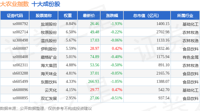 近10日内大农业(399814)指数成份股做了调整,新纳入了5只股票,剔除了5只股票。