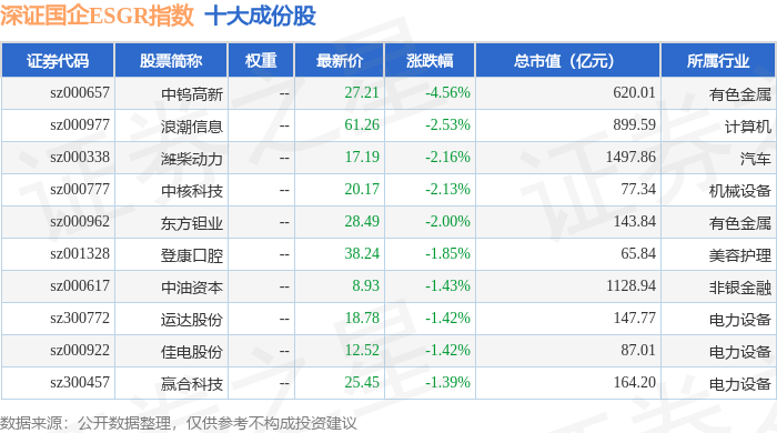 深证国企ESGR(470055)指数十大成份股详情如下: