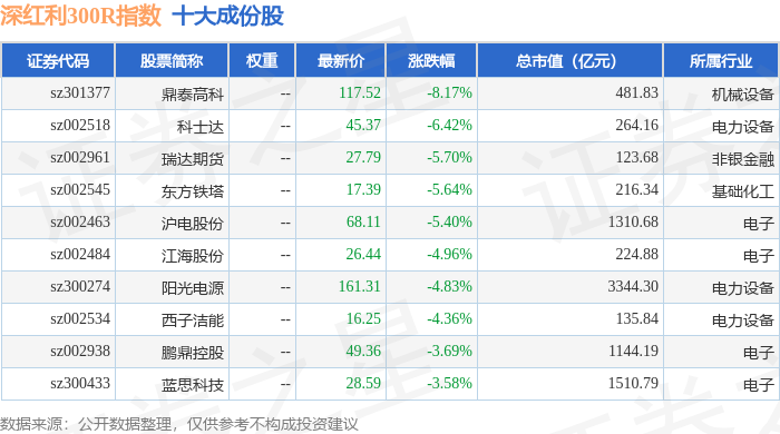 证券之星消息,12月18日,深红利300R(470062)指数报收于8039.41点,跌0.02%,成交1518.11亿元,换手率1.27%。当日该指数成份股中,上涨的有125家,重药控股以9.94%的涨幅领涨,下跌的有171家,鼎泰高科以8.17%的跌幅领跌。