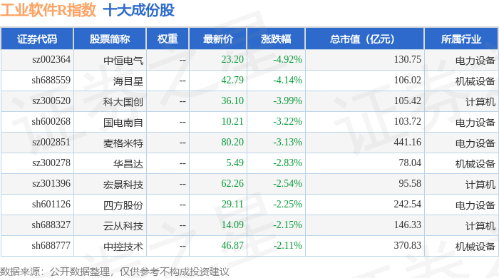 近10日内工业软件R(480034)指数成份股做了调整,新纳入了1只股票,剔除了1只股票。