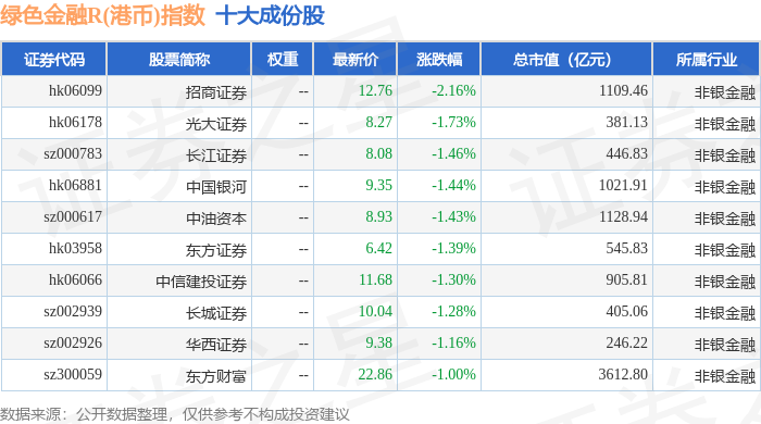 绿色金融R(港币)(480053)指数十大成份股详情如下: