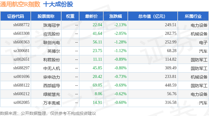 通用航空R(480076)指数十大成份股详情如下: