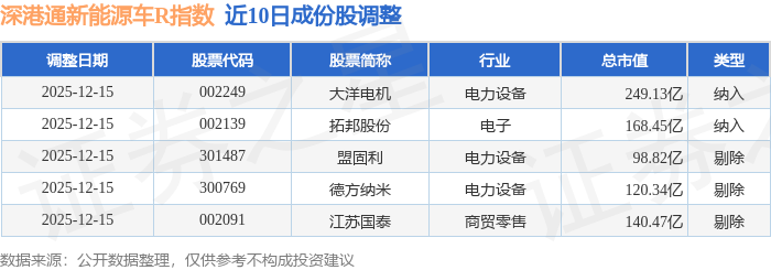 近10日内深港通新能源车R(483087)指数成份股做了调整,新纳入了2只股票,剔除了3只股票。