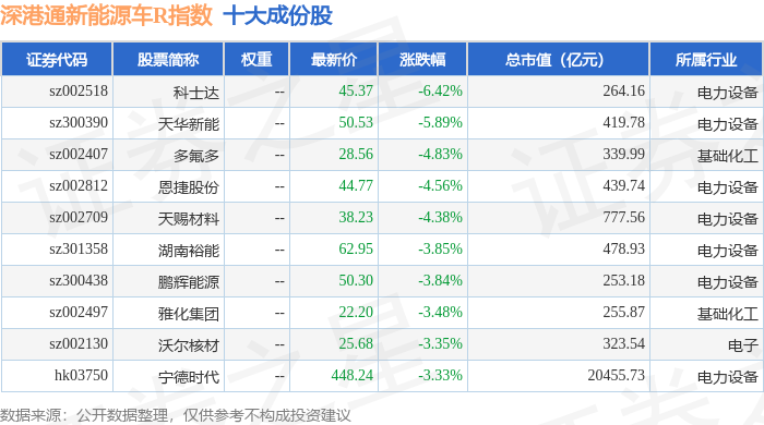 深港通新能源车R(483087)指数十大成份股详情如下: