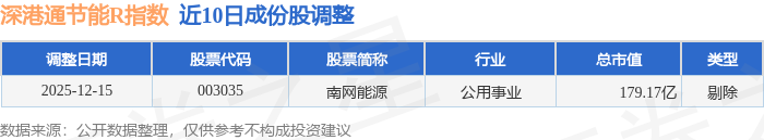 近10日内深港通节能R(483085)指数成份股做了调整,剔除了1只股票。