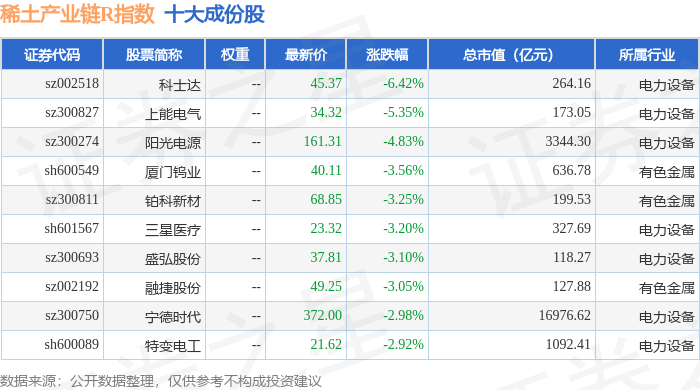 资金流向方面,稀土产业链R(489013)指数成份股当日主力资金净流出合计35.04亿元,游资资金净流入合计7.62亿元,散户资金净流入合计27.42亿元。成份股资金流向详情见下表: