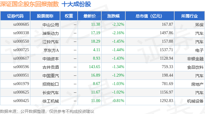 深证国企股东回报(970064)指数十大成份股详情如下: