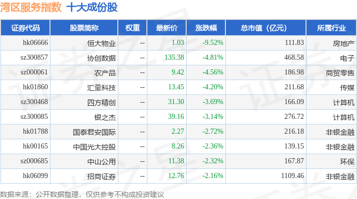 近10日内湾区服务(980011)指数成份股做了调整,新纳入了1只股票,剔除了2只股票。