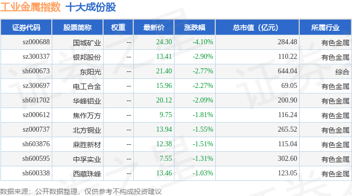 近10日内工业金属(980043)指数成份股做了调整,新纳入了2只股票,剔除了2只股票。