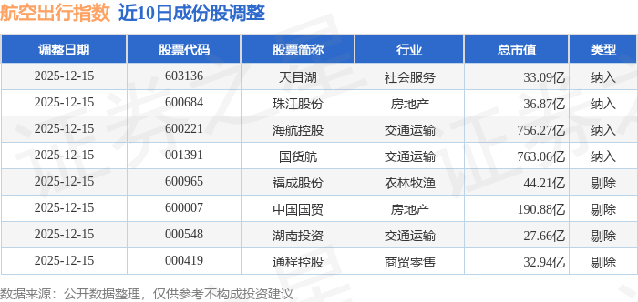 近10日内航空出行(980059)指数成份股做了调整,新纳入了4只股票,剔除了4只股票。