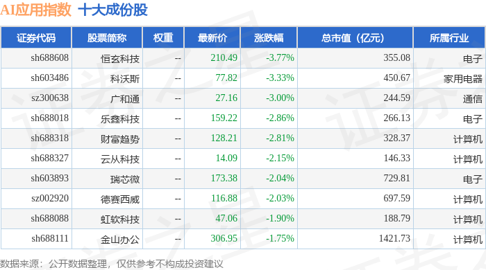 近10日内AI应用(980112)指数成份股做了调整,新纳入了3只股票,剔除了3只股票。
