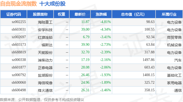 证券之星消息,12月18日,自由现金流(980092)指数报收于5255.81点,涨0.0%,成交373.37亿元,换手率1.03%。当日该指数成份股中,上涨的有52家,华人健康以20.0%的涨幅领涨,下跌的有40家,海陆重工以4.81%的跌幅领跌。