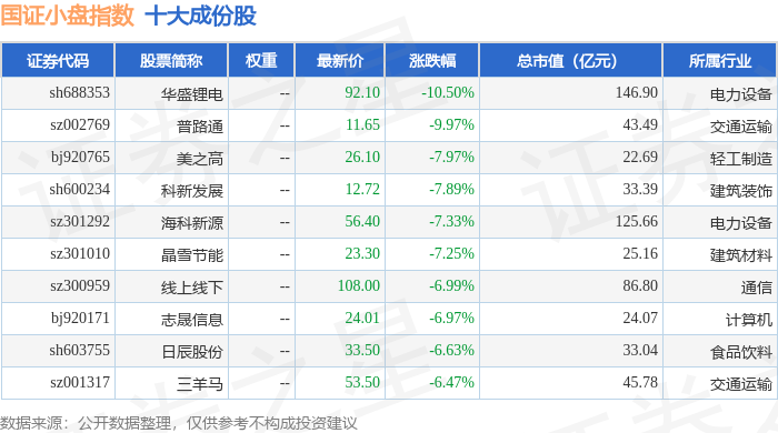 国证小盘(980202)指数十大成份股详情如下: