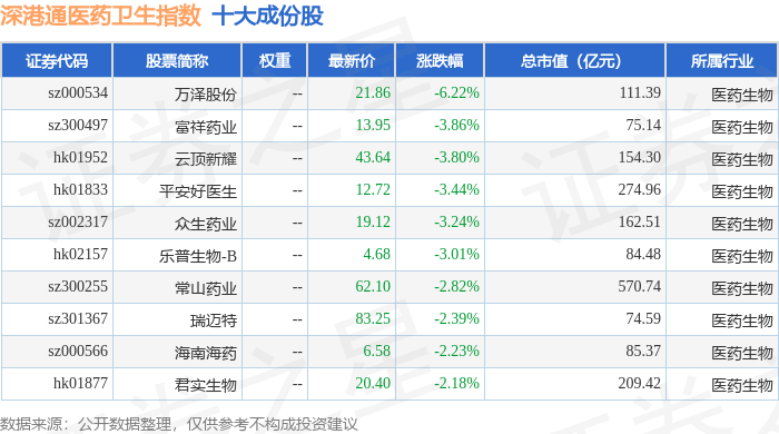 深港通医药卫生(983023)指数十大成份股详情如下: