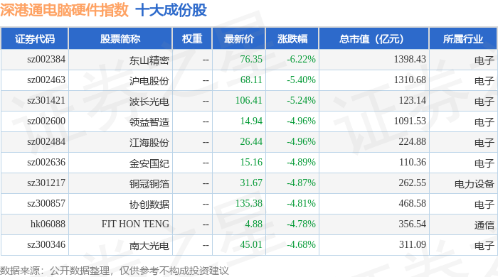 深港通电脑硬件(983043)指数十大成份股详情如下: