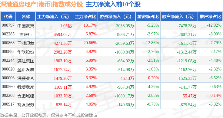 资金流向方面,深港通房地产(港币)(983072)指数成份股当日主力资金净流入合计8636.49万元,游资资金净流出合计3647.68万元,散户资金净流出合计4988.81万元。成份股资金流向详情见下表: