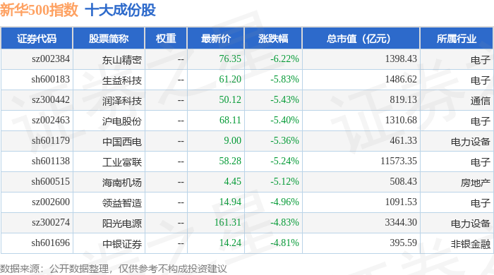资金流向方面,新华500(989001)指数成份股当日主力资金净流出合计210.43亿元,游资资金净流入合计40.97亿元,散户资金净流入合计169.45亿元。成份股资金流向详情见下表: